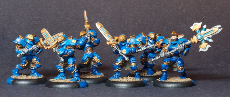I’m pretty happy with the unit. I used frisket film and an airbrush on the banner to get the cygnar symbol…which turned out pretty good. I’m not happy with the gold trim on the officers cloak… generally not in love with that model as I don’t have the skill to make it ‘pop’ in any interesting way.