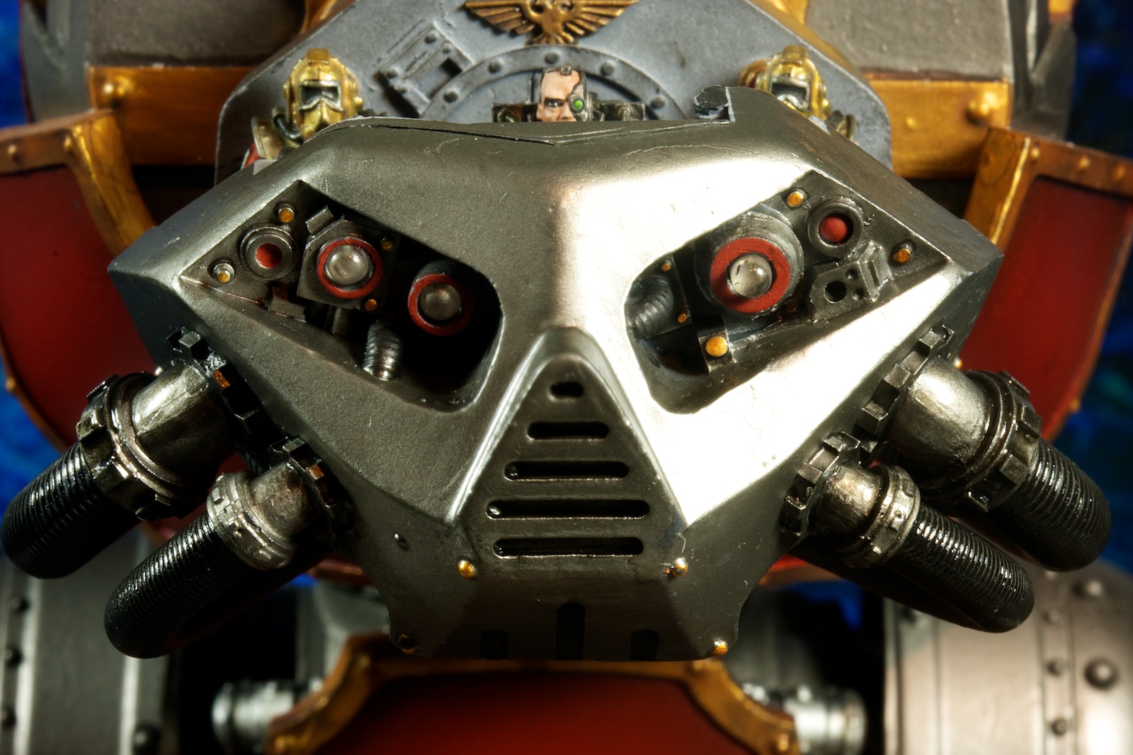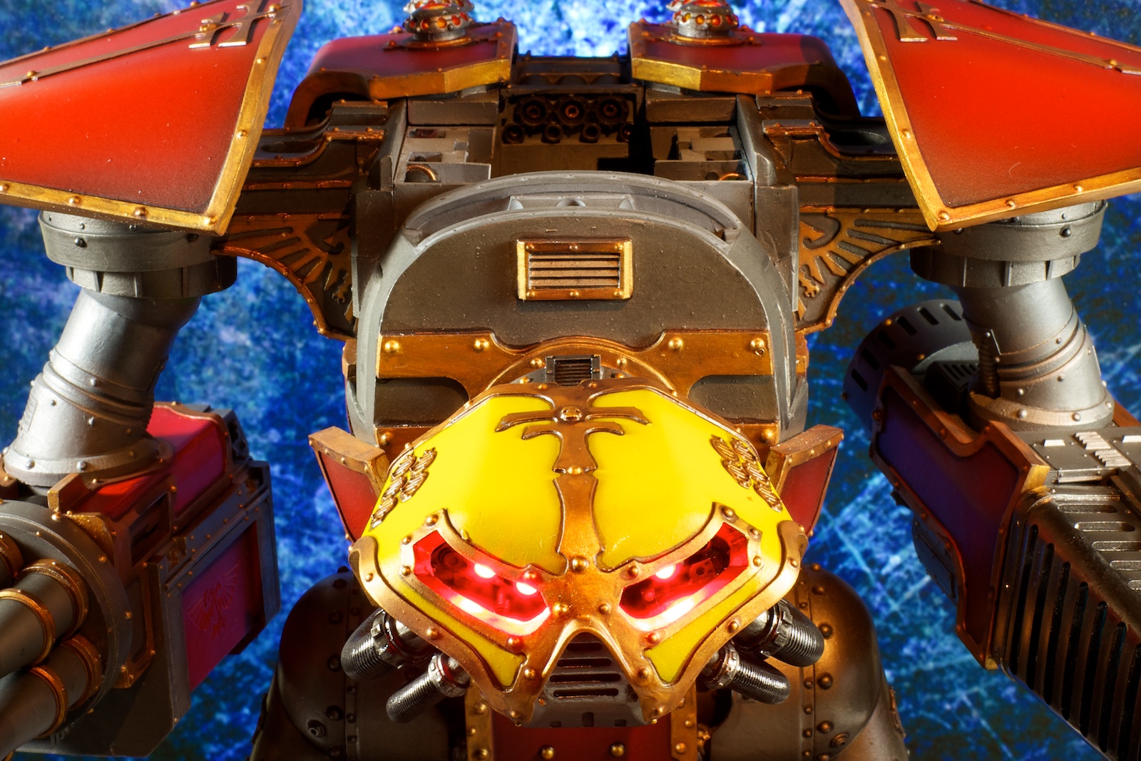 Not sure what you’re referring to? The top carapace includes the eagle and scroll work. This guy is 100% stock Forge World.