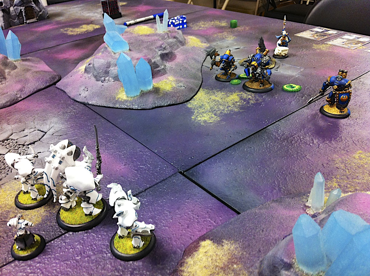 Quick description of the game… we played the “Break The Line” game type, and while I was able to toast both of his light warjacks, he fragged my unit of long gunners with his stealthed Mage Hunters (they could shoot me, but I couldn’t shoot them, as I didn’t bring any anti stealth) and my Ironclad with his battle group. It could have gone either way if it was a basic game… but at the beginning on my turn 4 he controlled two of his zones and one of mine…so it was game over! In retrospect I don’t think I’d play this game again at low points values (anything less than 35 or so).